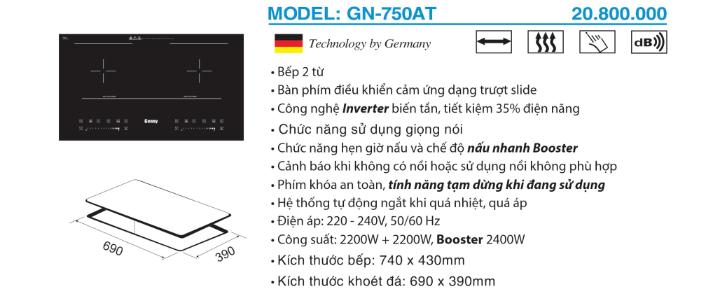 Bếp Từ Đôi Genny GN-750AT