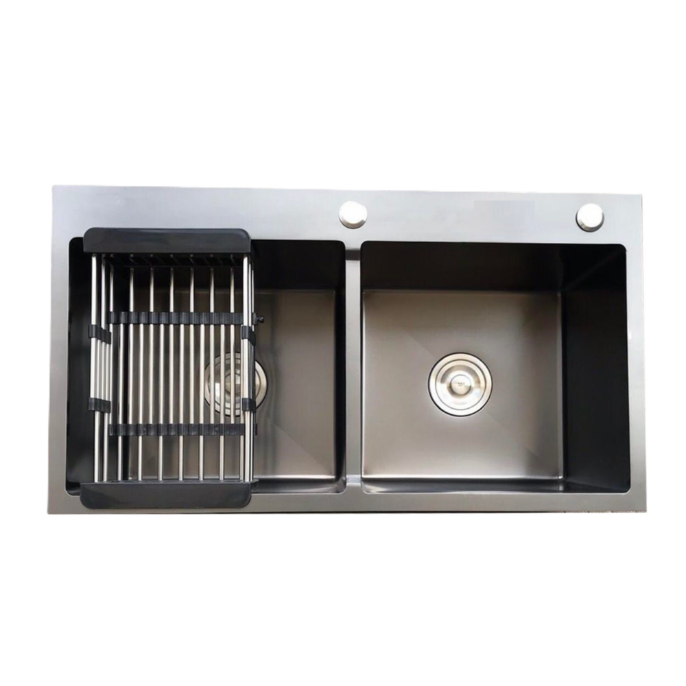 Chậu rửa chén bát 2 hố lệch Genny GN-7843N